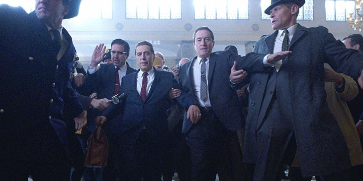 La última de Scorsese puede no gustar, faltaría más, como puede no gustar un sorbete de chocolate, un ramo de rosas, el Guggenheim, o, incluso cruzando los límites de la razón, una canción de Bunbury. Lo que es innegable es el rigor histórico que desprende el metraje de El Irlandés —salvando, claro está, la licencia del director sobre la aún no resuelta desaparición de Hoffa—, haciendo viajar al espectador a través del tiempo gracias a una intachable recreación de la época. Es de agradecer, además, que haya evitado recurrir al misticismo glamuroso que suele acompañar la representación del crimen organizado, dotando al guión de un realismo digno de cerrada ovación. En cuanto a la caracterización e interpretación de los personajes, son pocas, o muy pocas, las ocasiones en las que podemos disfrutar de un triángulo perfecto como es el que conforman Robert De Niro —Frank Sheeran—, Al Pacino —Jimmy Hoffa— y Joe Pesci —Russel Bufalino—. No sabría con cuál quedarme, la verdad; eso sí, cuando te acostumbras a la digitalización de sus rostros a la hora de rejuvenecerlos. Cada diálogo en el que intervienen dos de estos tres monstruos contiene una obra maestra en sí mismo. Mi valoración sobre la película, a pesar de que la acción transcurre de forma más pausada de lo estoy acostumbrado a digerir y también a crear —disculpen la arrogancia— sobrepasa el sobresaliente, y, sin embargo, dejar constancia de mi nada trascendente opinión no es lo que ha motivado este artículo.